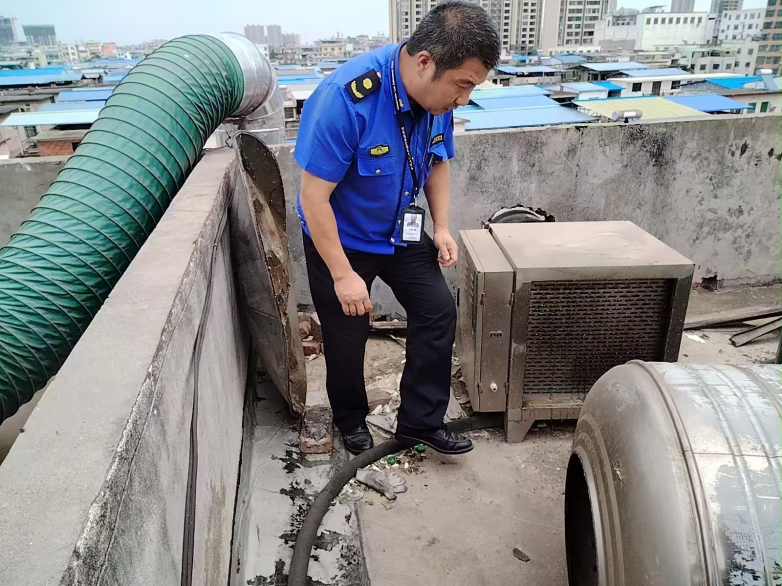 精准布控,未雨绸缪织密“防护网”。 高考前夕,油烟中队已提前启动“静音护考”专项行动预案。他们深知,油烟异味与设备噪音虽为日常城市生活的“背景音”,但在高考期间却可能成为考生专注力的无形干扰。行动以新一高、老一高、完中及实验初中等考点周边为核心,辐射周边住宅密集区域和县衙周边等人员聚集场所。中队人员提前数日便展开地毯式排查:逐户登门提醒,敦促餐饮单位开启并定时清洁油烟净化设备;细查运行记录,确保设备高效运转且无“带病上岗”。